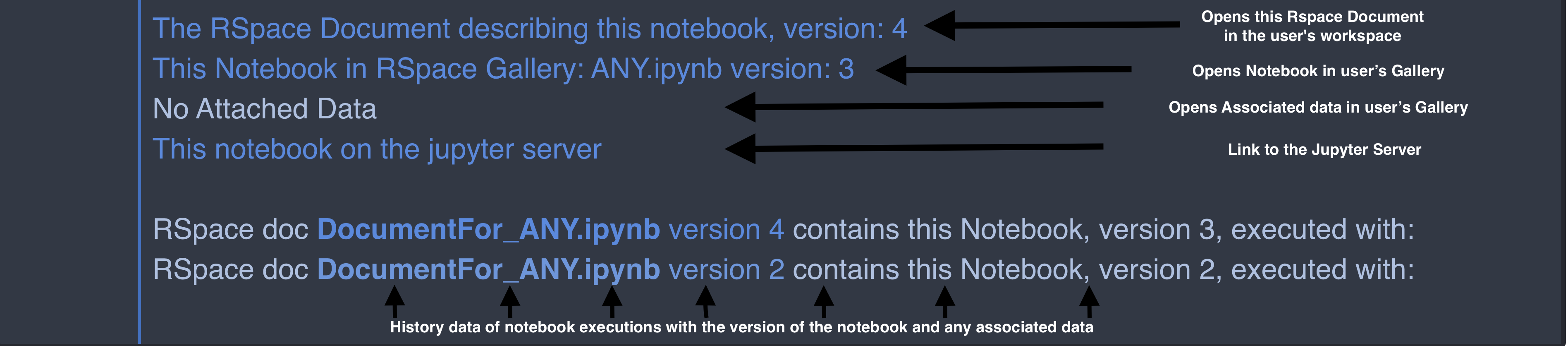 - RSpace keeps prevsious versions of files and so its possible to restore previous versions of the Jupter Notebook and its associated data.