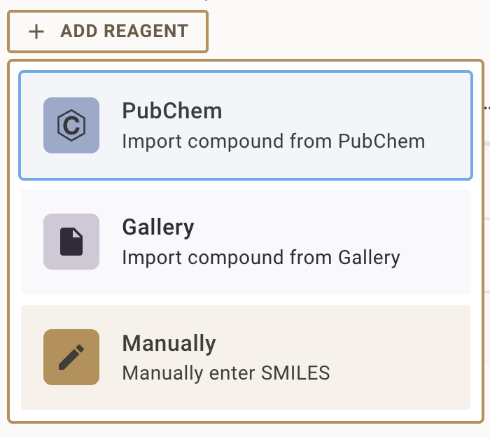 - From Gallery: Select from previously used compounds in your Chemistry gallery